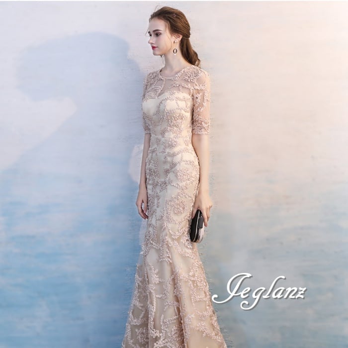 パーティ ドレス 刺繍 レース マーメイドライン ロング/イブニング(M9246)ζ