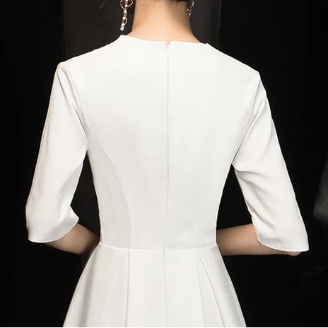 2色 パーティドレス フォーマル ボタン Aライン 5分袖 4パターン(M9320)ζ