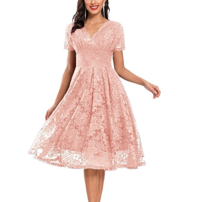 5色 結婚式 パーティ ドレス ワンピース 総レース Aライン(M9468)ε