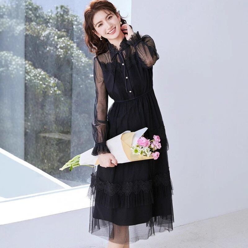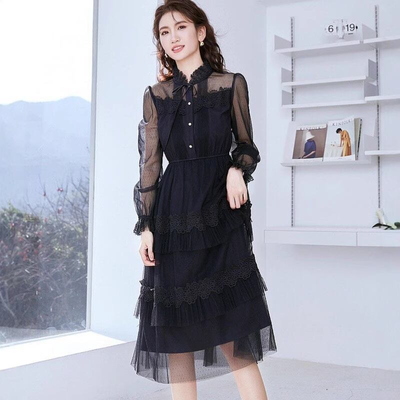 2色 ワンピース ドレス 刺繍 レース レイヤード 透け感 ♪(M9499)α