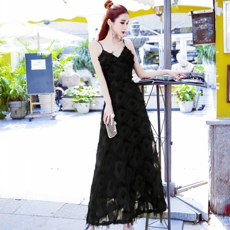 2色 パーティ ドレス キャミワンピース フェザードレス シャギー (M9524)ε