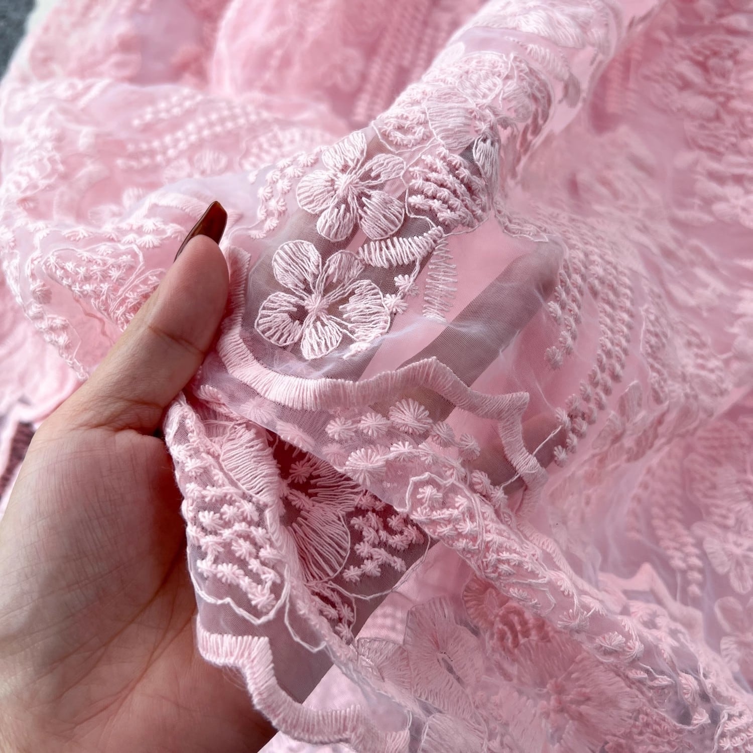 どの角度から見ても華やぎを感じる総レースのセットアップ