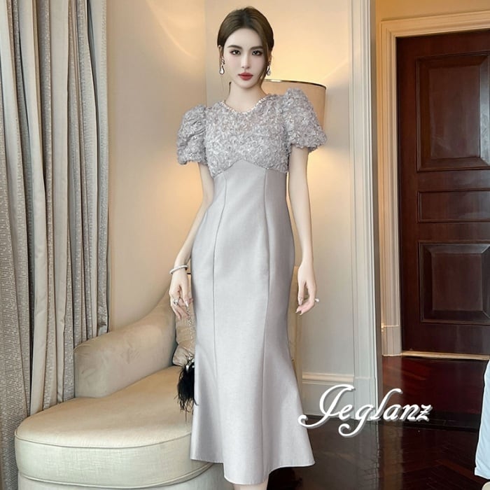 2色 パーティドレス ワンピース ビジュー 花モチーフ シアー感(MA035)ε