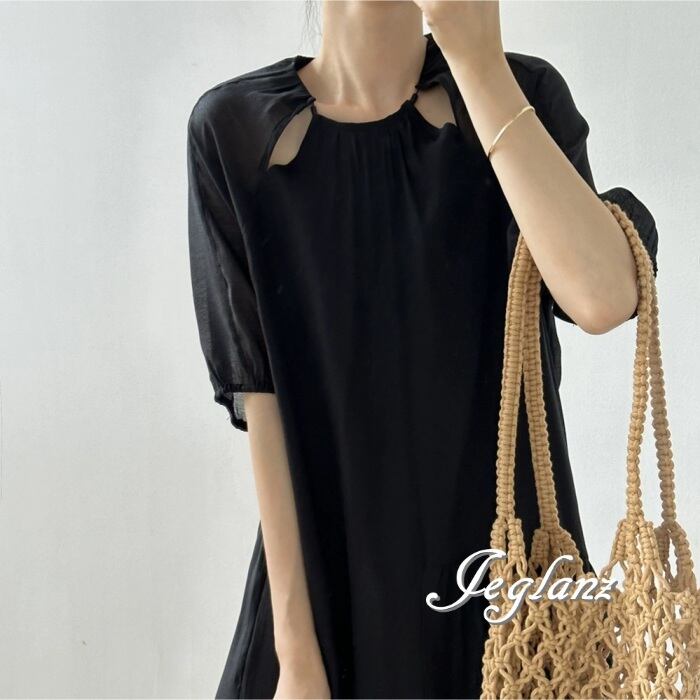 2色 ワンピース カットアウト オーバーサイズ シアー感 5分袖 ♪(MA069)β