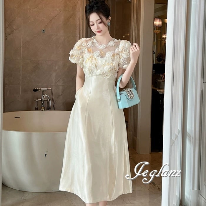 パーティ ドレス ワンピース 立体フラワー シアー Aライン(MA113)ε