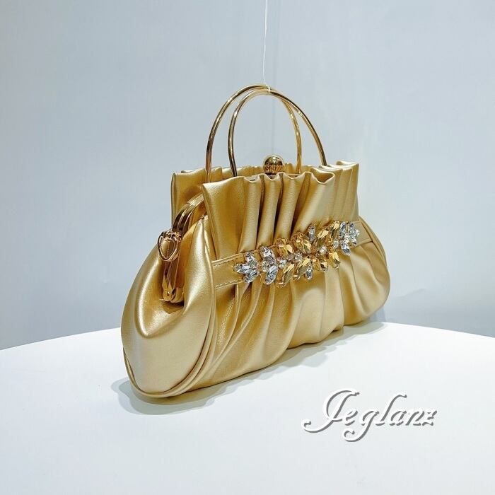 5色 パーティ バック メタル 持ち手付き ビジュー 光沢感 2way ♪(MA251)ν