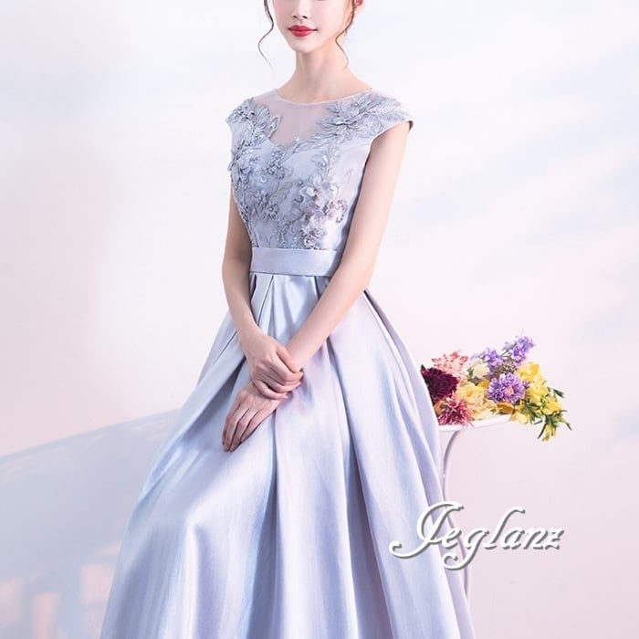 パーティ イブイングドレス 立体フラワー 編み上げ シアー感 ♪ (MA363)ε