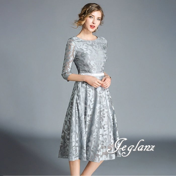透かしレースに優美なモチーフをあしらったドレス