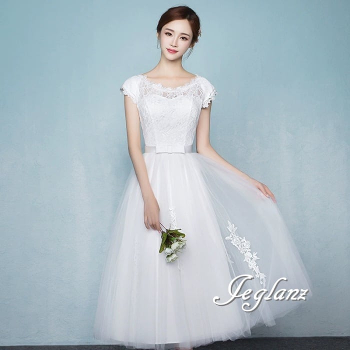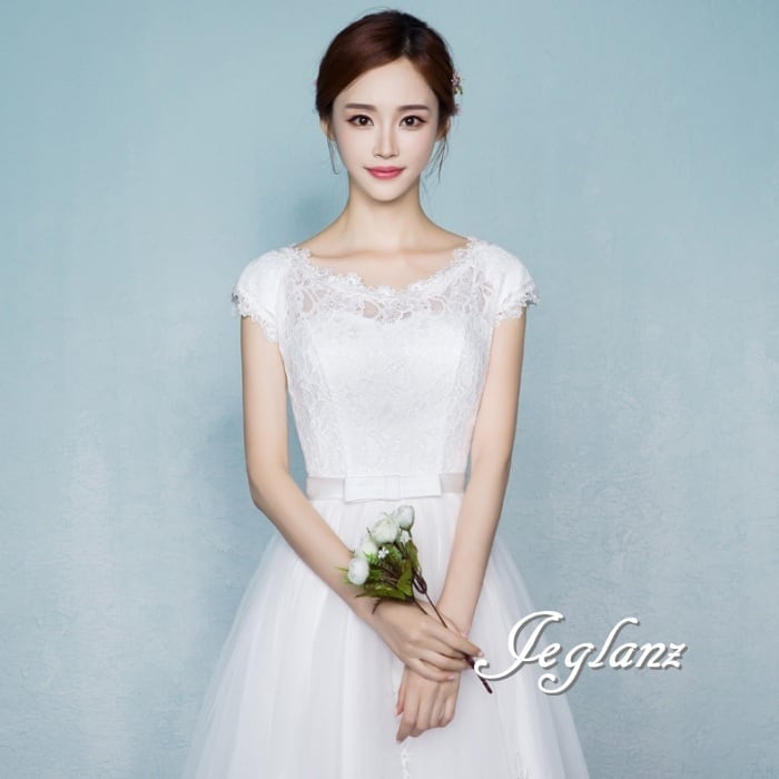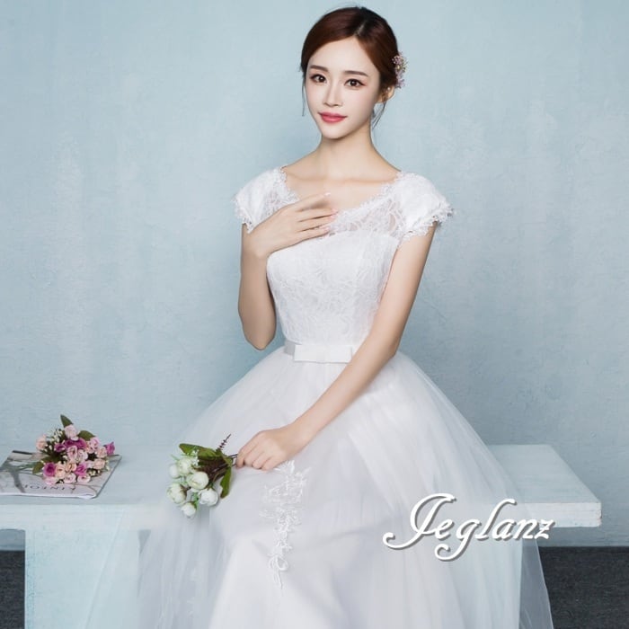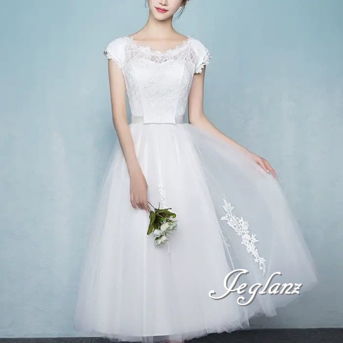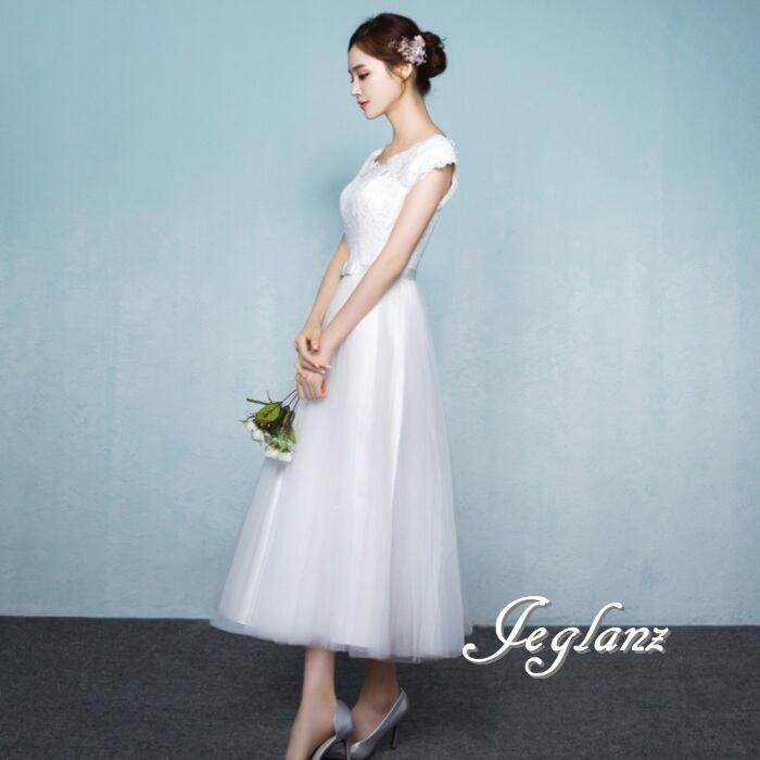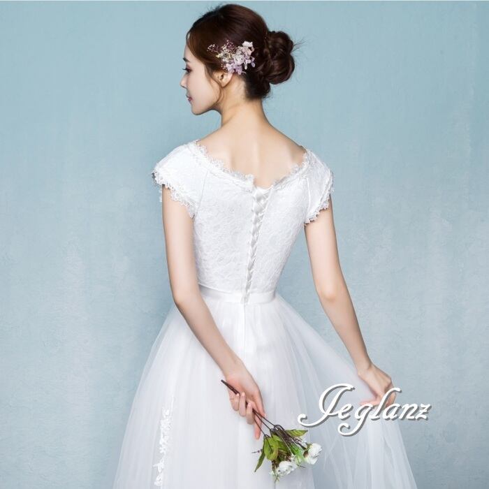 ウエディング ドレス レース 編み上げ 異素材 チュール ミニマル(MA635)ο