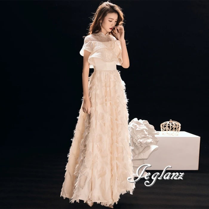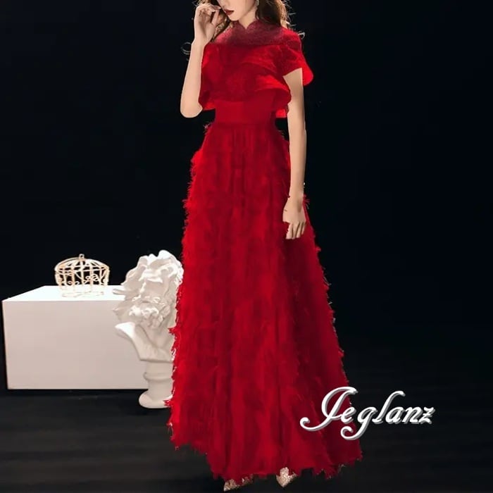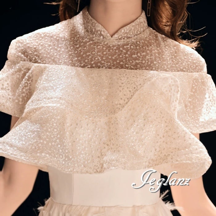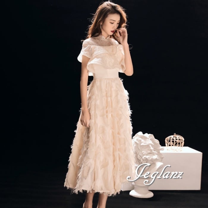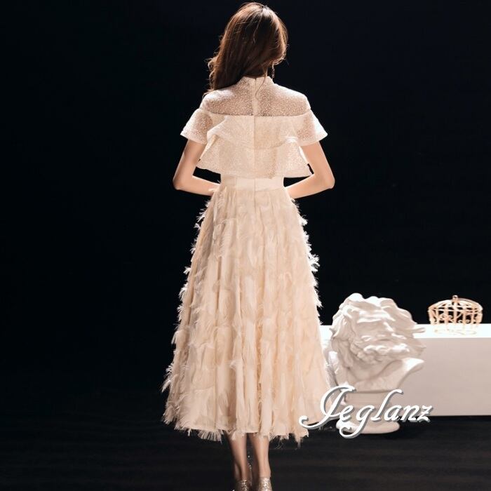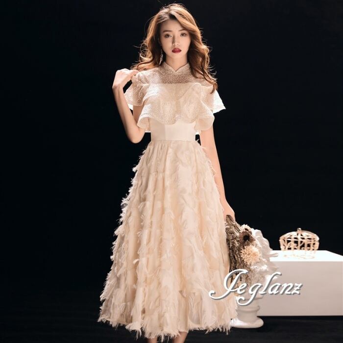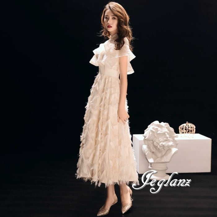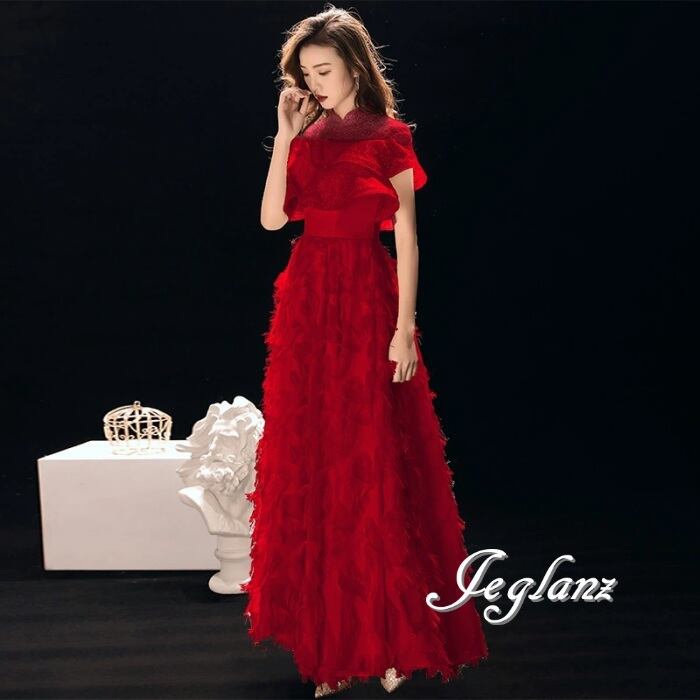 2色 パーティ フェザードレス フリル シアー ロング/イブニング (MA643)ζ