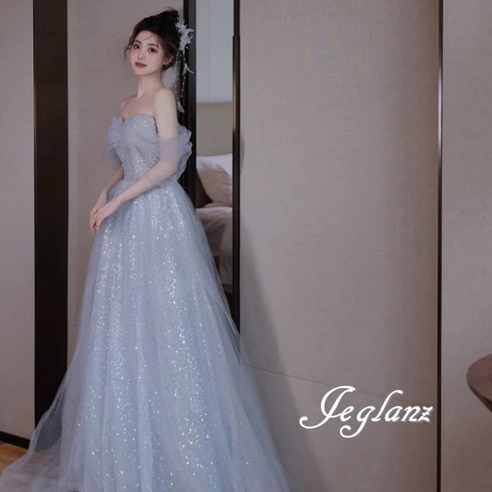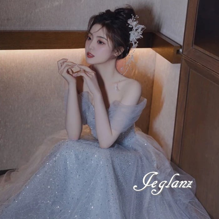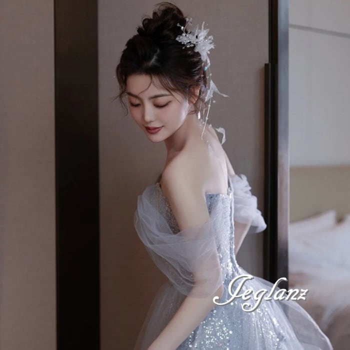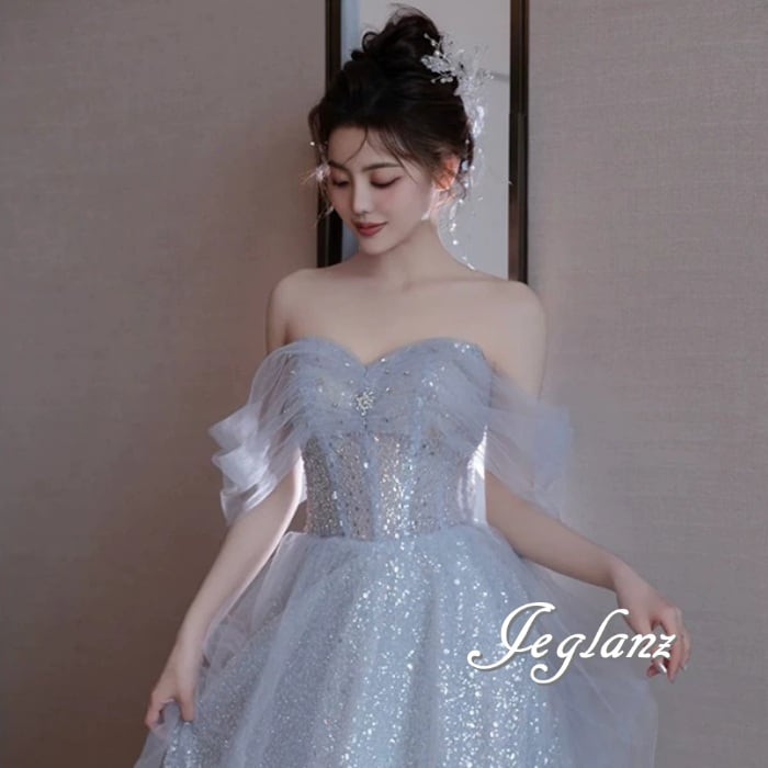 ウエディング カラードレス オフショル 編み上げ ラメ 光沢感 ♪(MA644)π