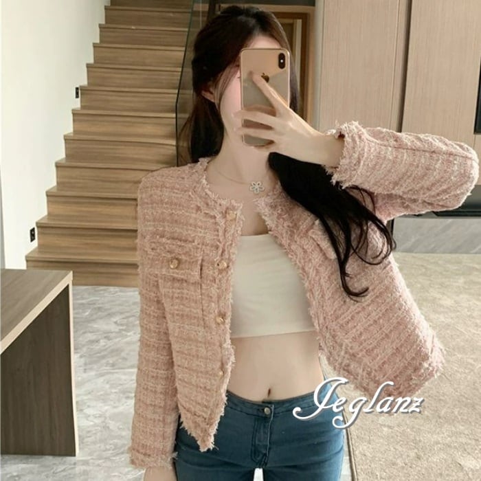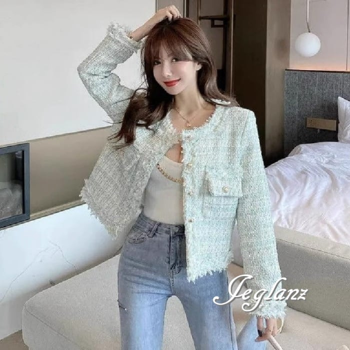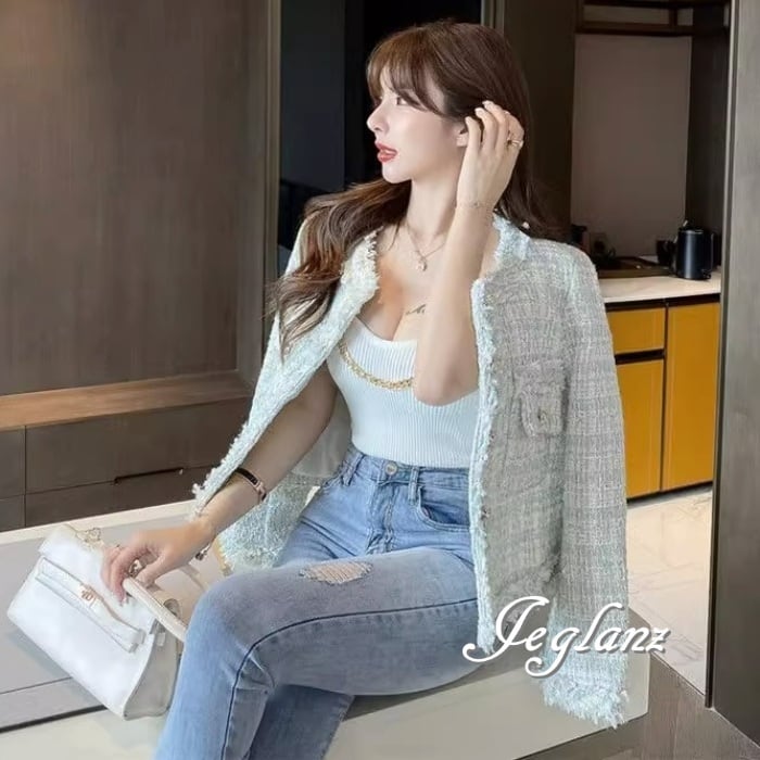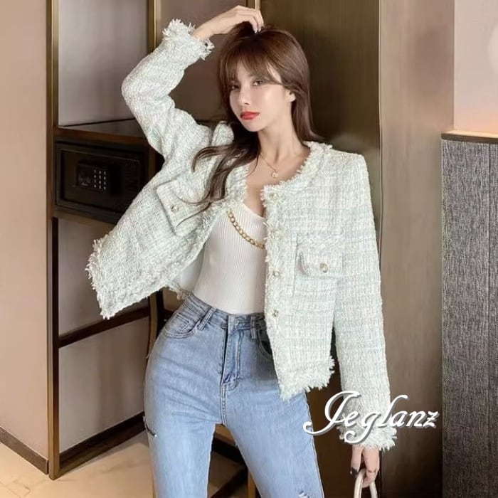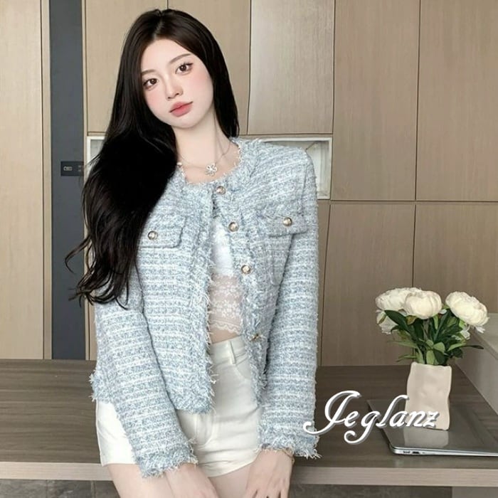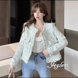 2色 ツイード ニット ジャケット フリンジ クラスアップ感 韓国 (MA662)τ