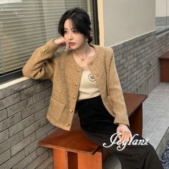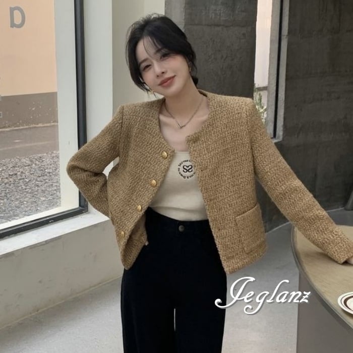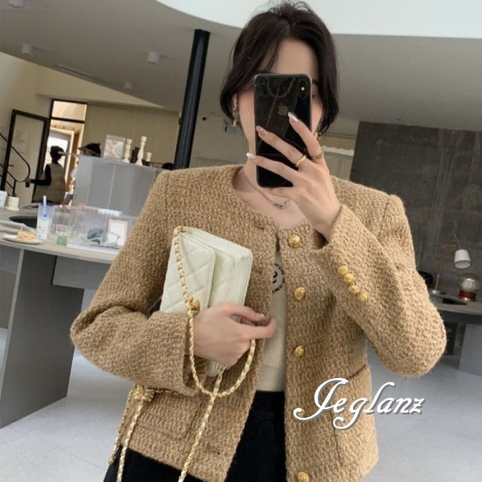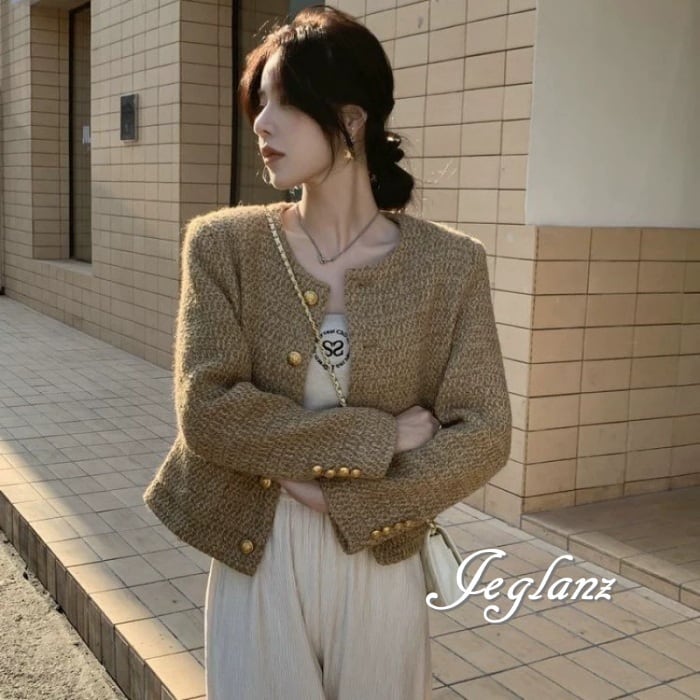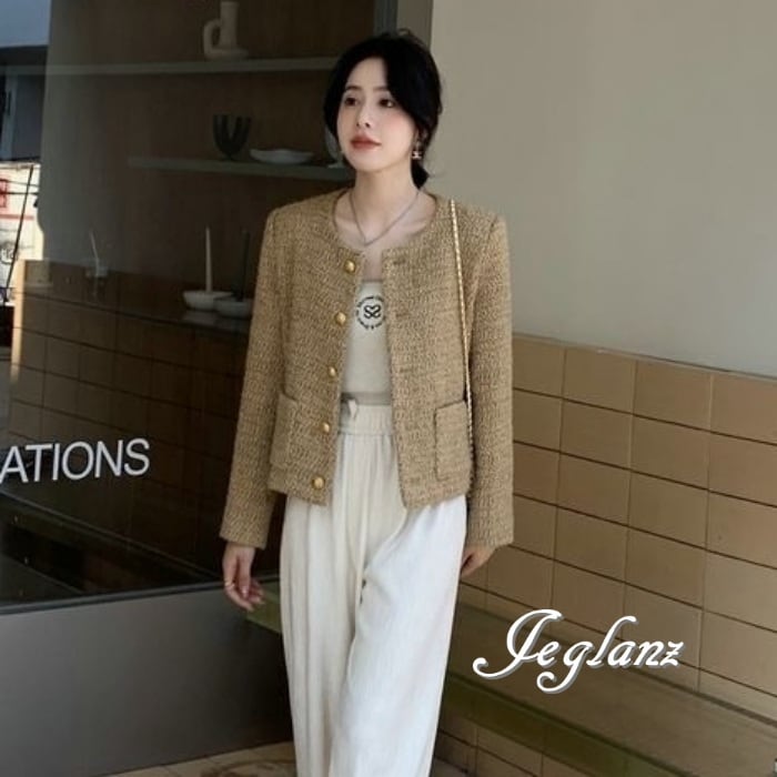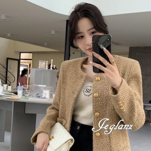ツイード ニット ジャケット ゴールドボタン クラスアップ感 ♪ (MA664)τ