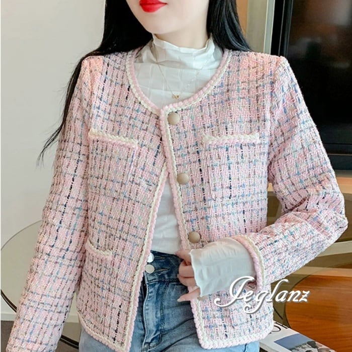 2色 ツイード ニット ジャケット 三つ編み トリミング クラス感 (MA672)τ