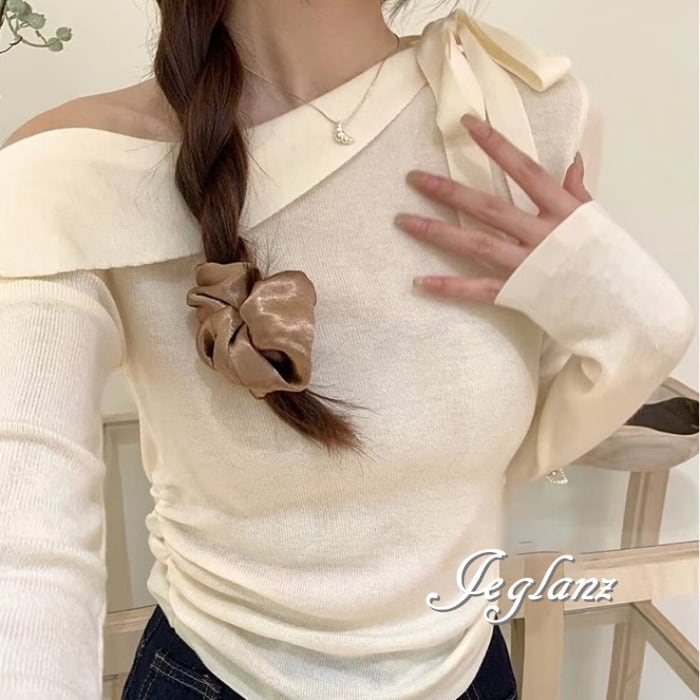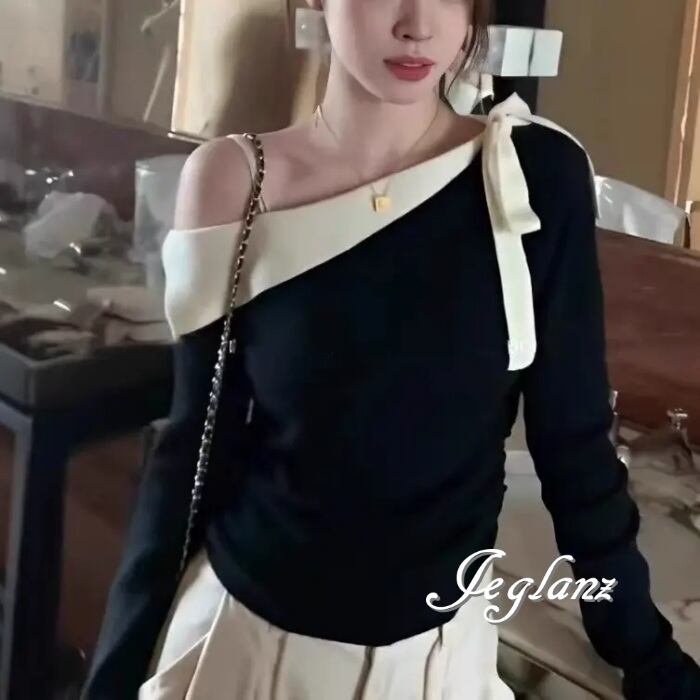 3色 ニット カットソー ブラウス トップス ワンショル 肌見せ ♪(MA674)σ,ς*