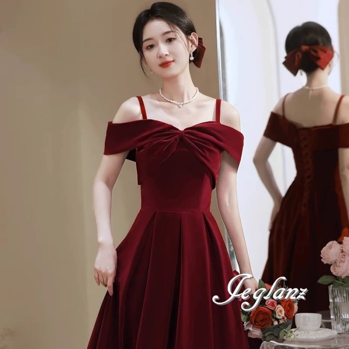 ベロア調 パーティ ドレス タック 編み上げ 肌見せ ファンシー(MA684)η