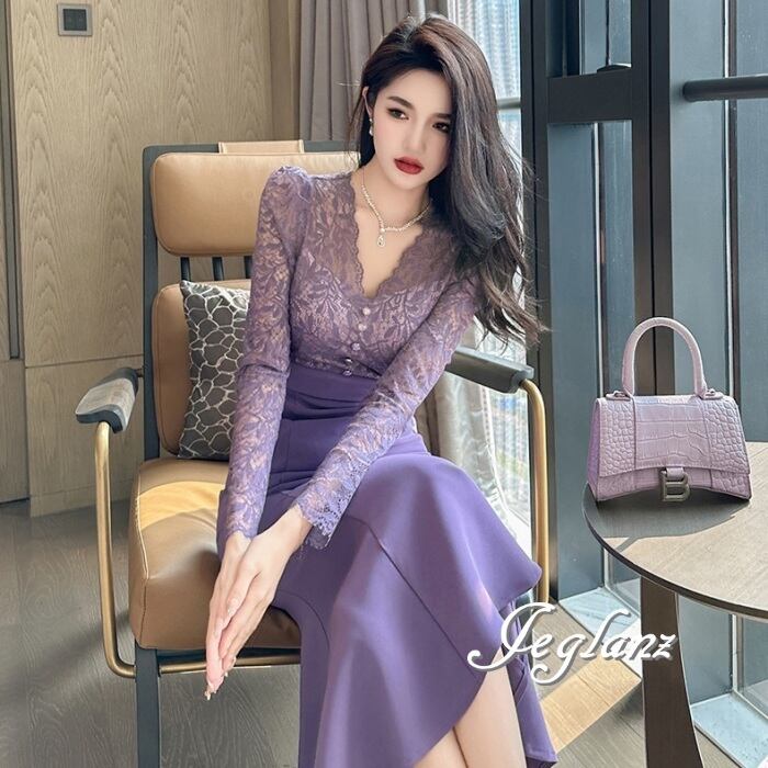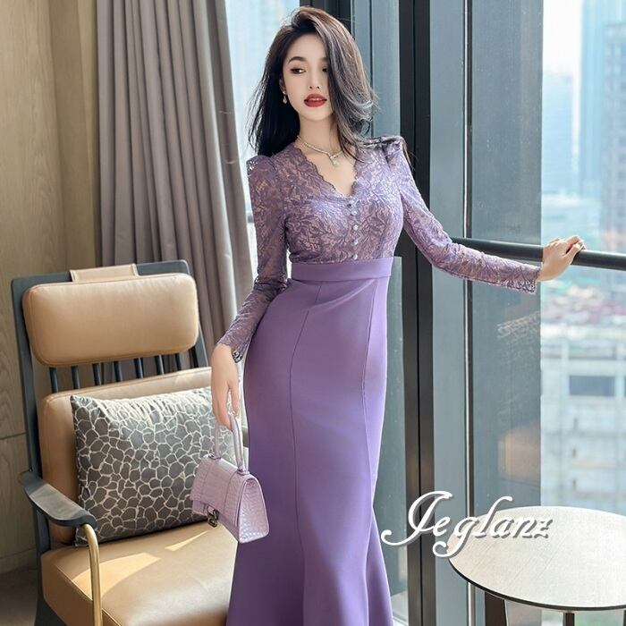 パーティ ドレス ワンピース 切替 レース マーメイドライン(MA704)ζ