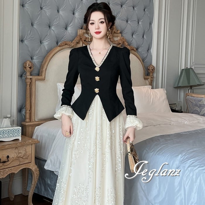 フェイク ワンピース V開き バイカラー ビジューキラキラ 光沢感(MA712)ζ