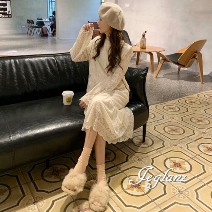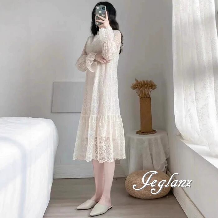 透かしレースに優美な刺繍をあしらったワンピースドレス