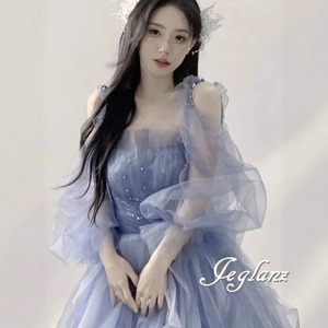 イブニングドレス パール付き フリル 背中 編み上げ 肌見せ(MA751)ζ
