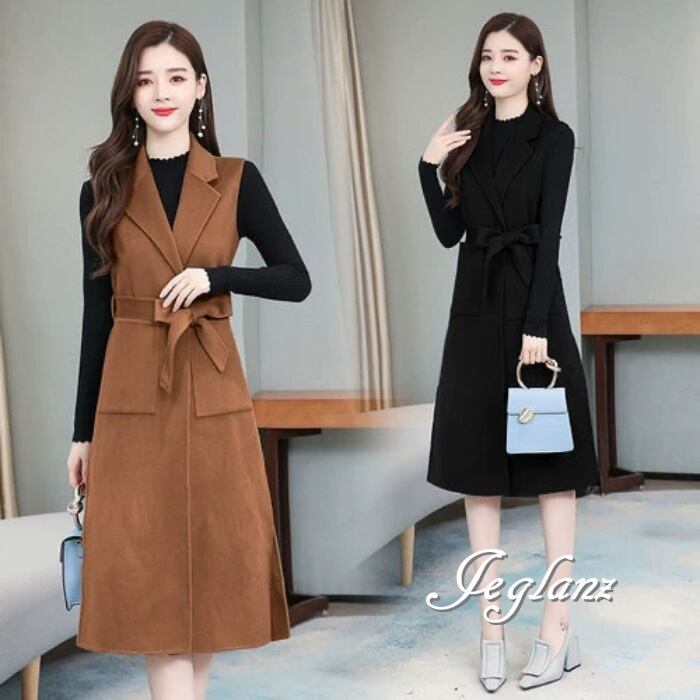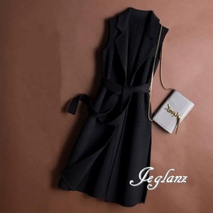 ニット ロングジレ ロングベスト 共ベルト エッジィ 3色 ♪(MA784)τ