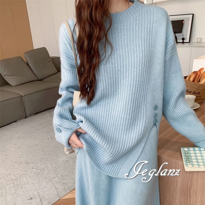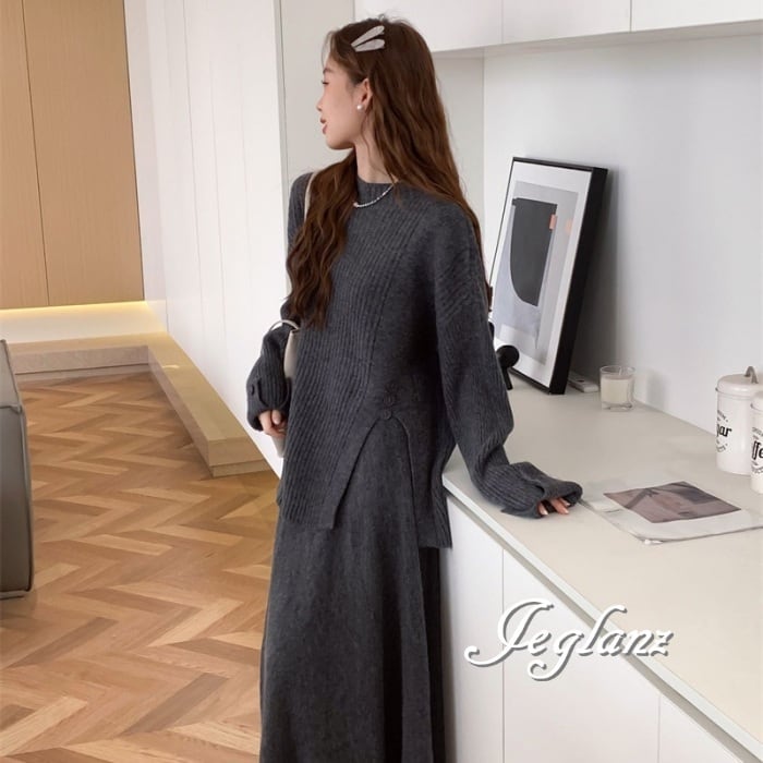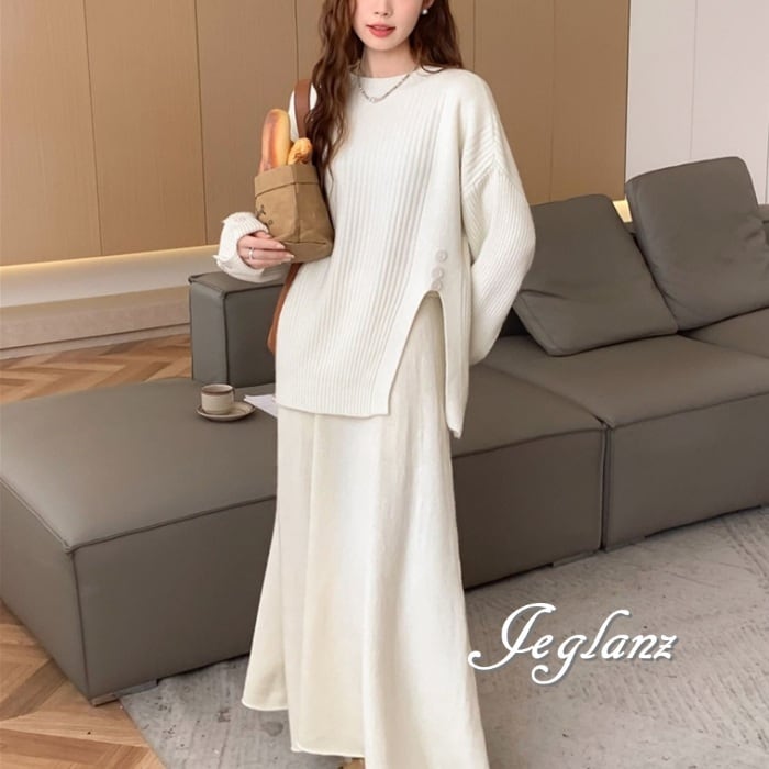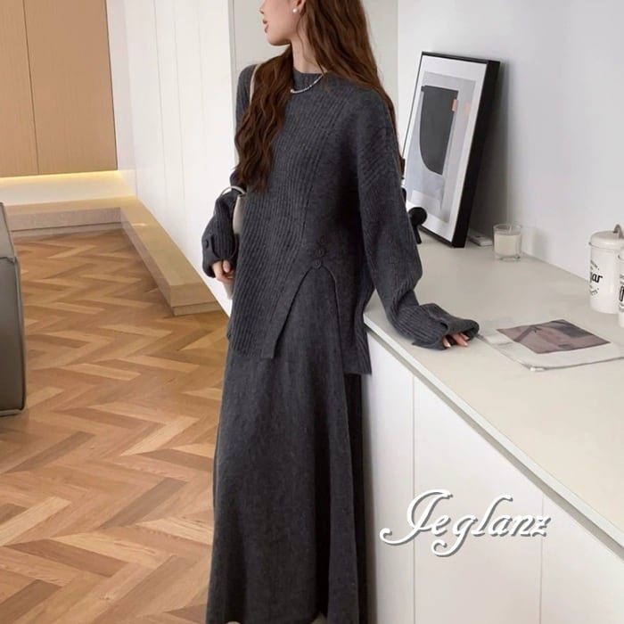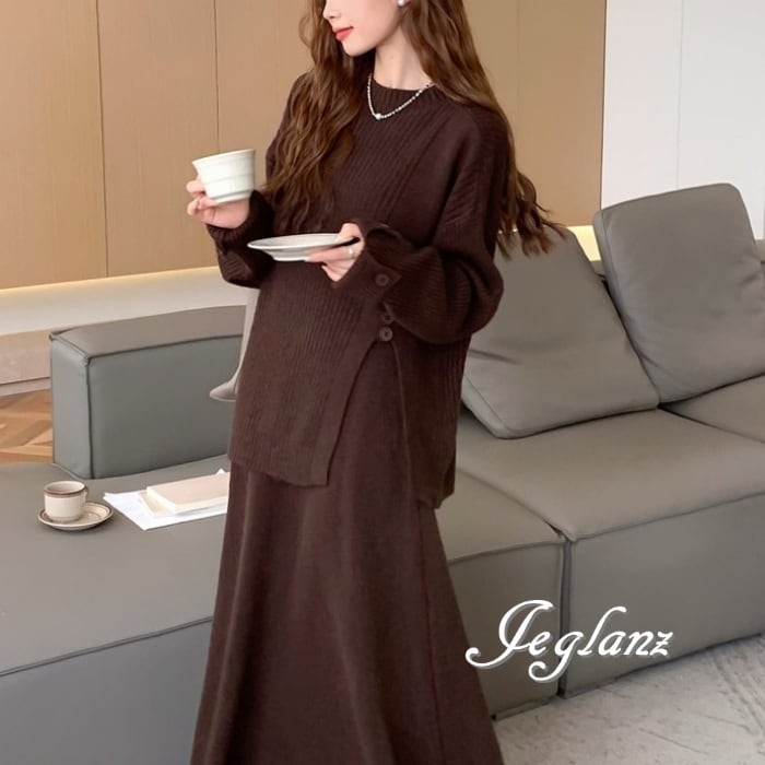 セットアップ 2点 リブ ニット スリット マキシ スカート 着回し 4色 ♪(MA786)λ