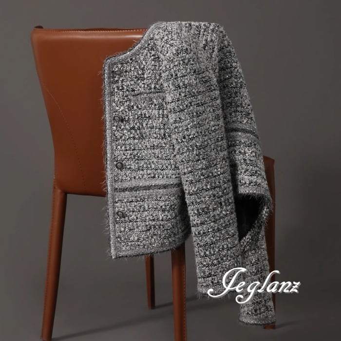 ツイード ニット ジャケット ノーカラー ボタン クラスアップ感 (MA802)σ,ς*