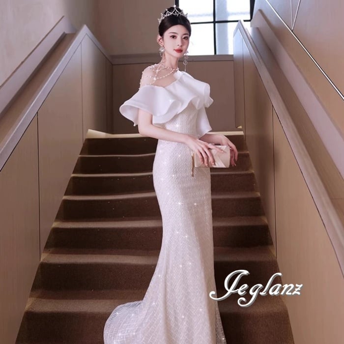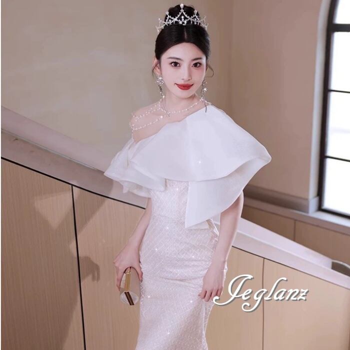 パーティ イブニングドレス フリルカラー キラキラ ラメ 光沢感(MA804)ζ