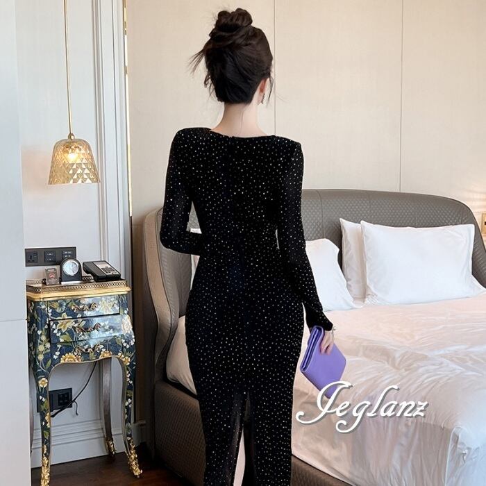 2色 パーティ ドレス ワンピース シャイニー キラキラ 光沢感(MA832)ζ
