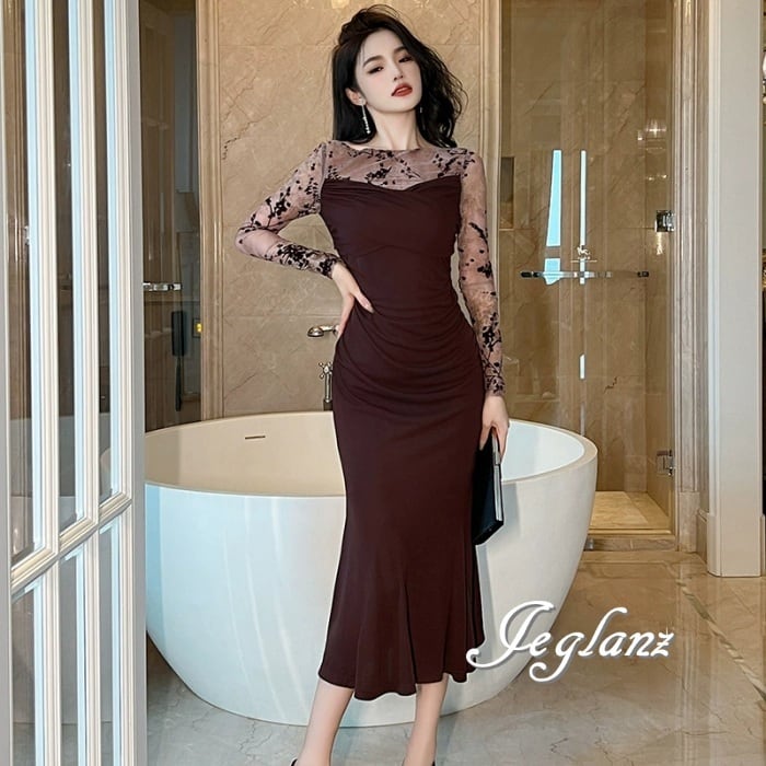 パーティ ドレス ワンピース 刺繍 レース マーメイドライン(MA833)ζ
