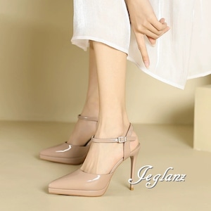2色 パンプス ヒール エナメル ストラップ 光沢感 高さ 8cm/10cm (MA844)ω