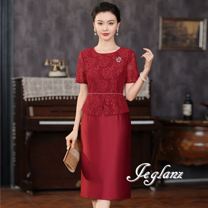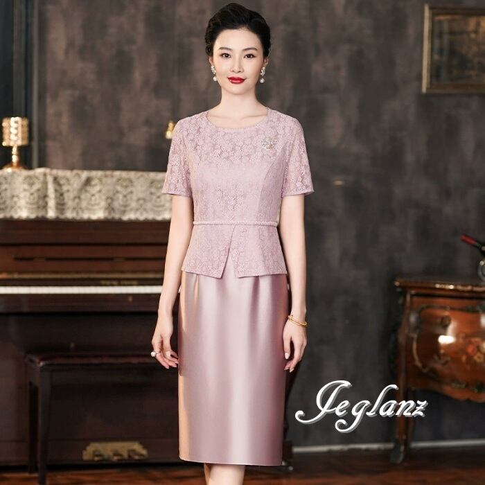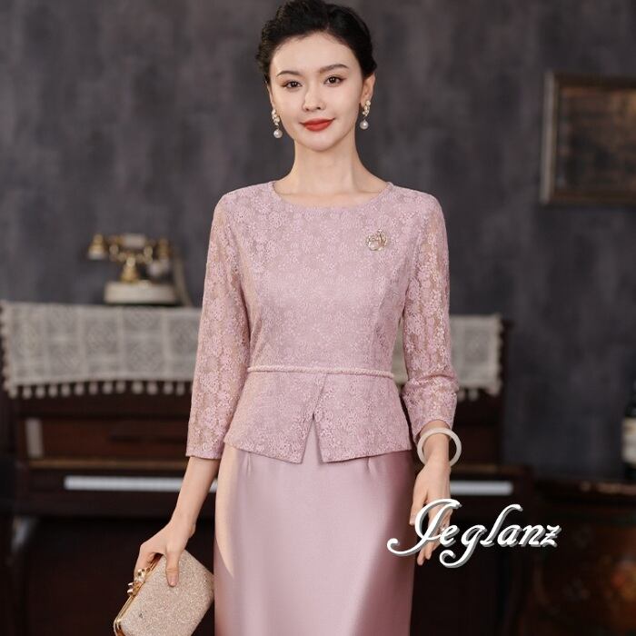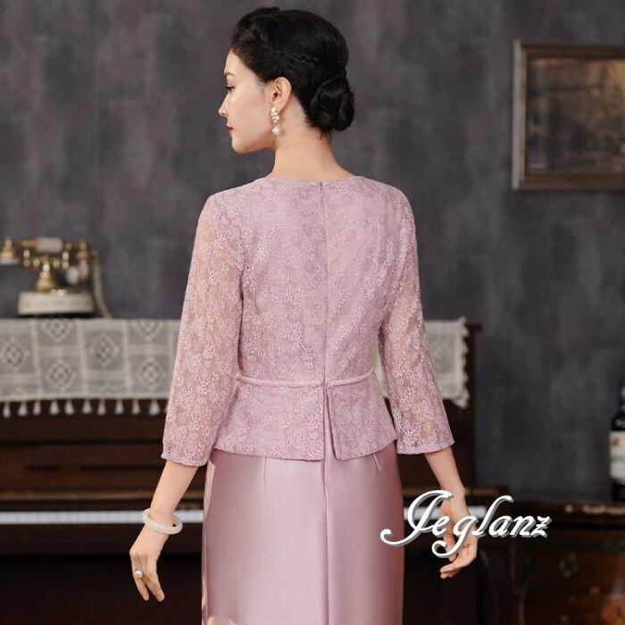 2色 パーティ フェイク ワンピース ドレス 刺繍 レース 半袖/7分袖(MA881)ζ