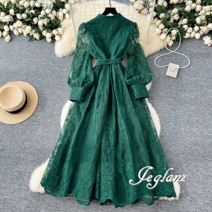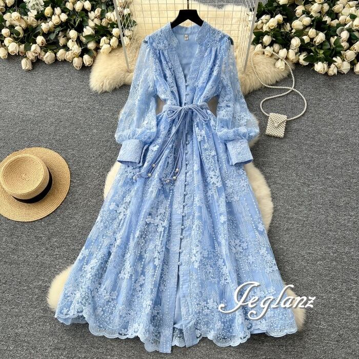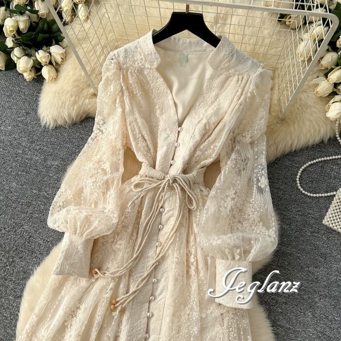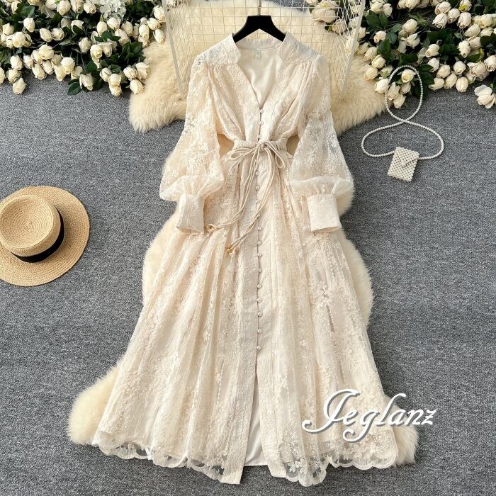 5色 ワンピース ドレス 刺繍 レース 紐ベルト ファンシー エレ派(MA882)γα