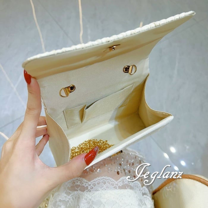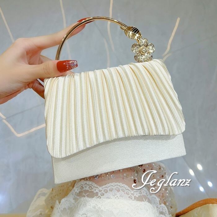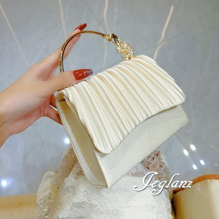 パーティ 結婚式 バック メタル 持ち手 カメリア 2way 光沢感 3色(MA906)ν