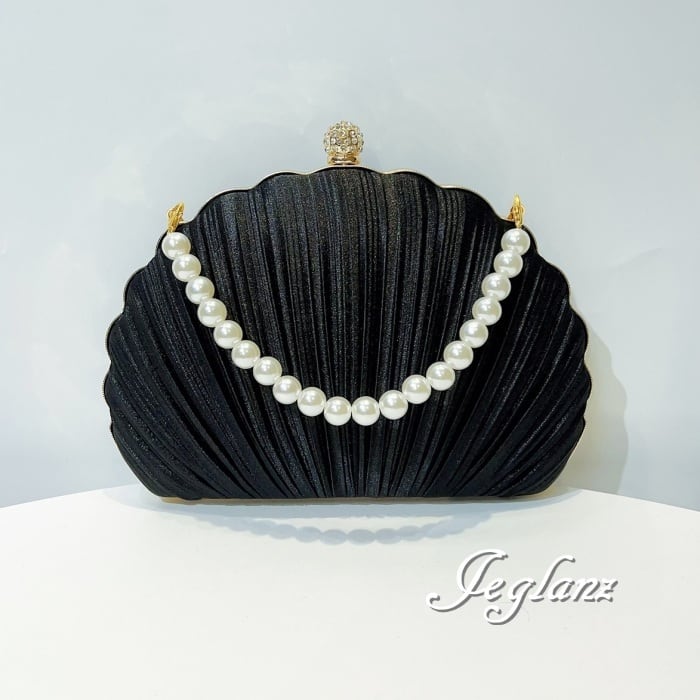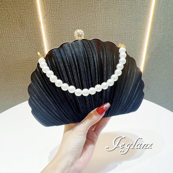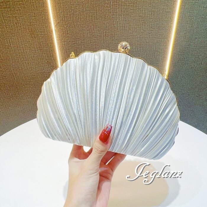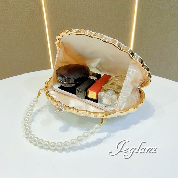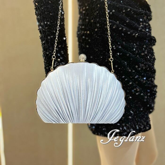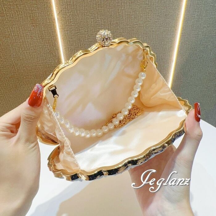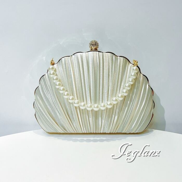 パーティ 結婚式 バック クラッチ パール持ち手 シェル 3way 3色(MA910)ν