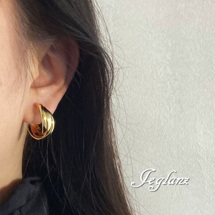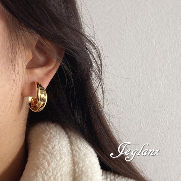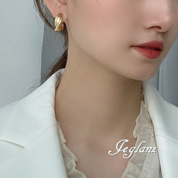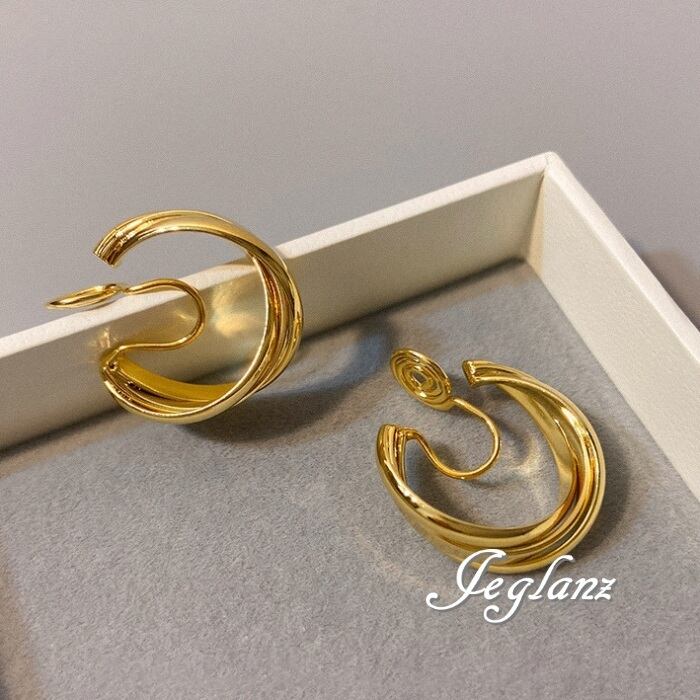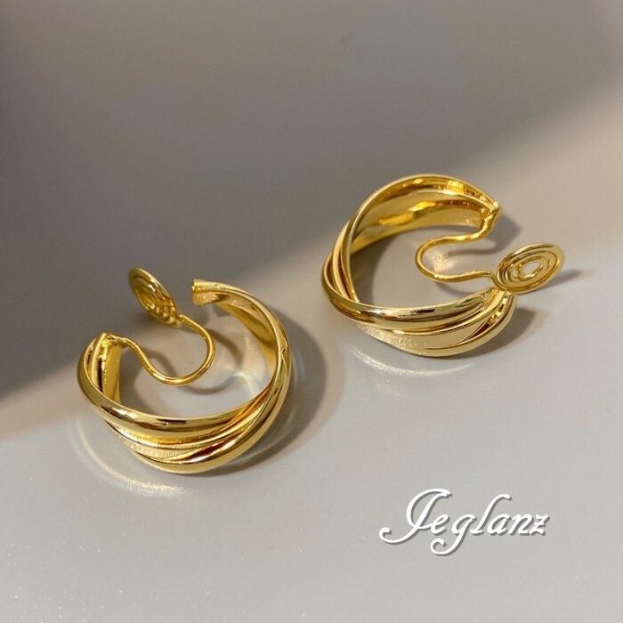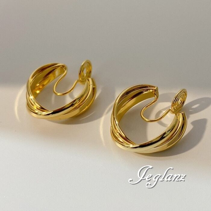 3色 フープ イヤリング イヤークリップ ツイスト デザイン (MA912)θ