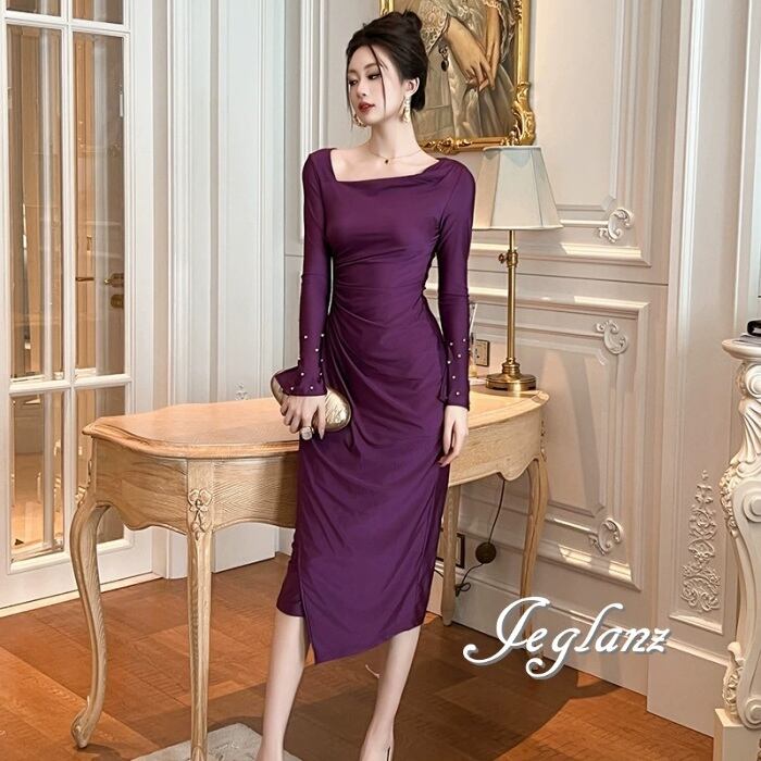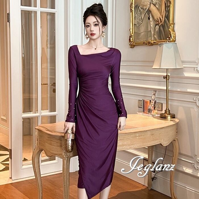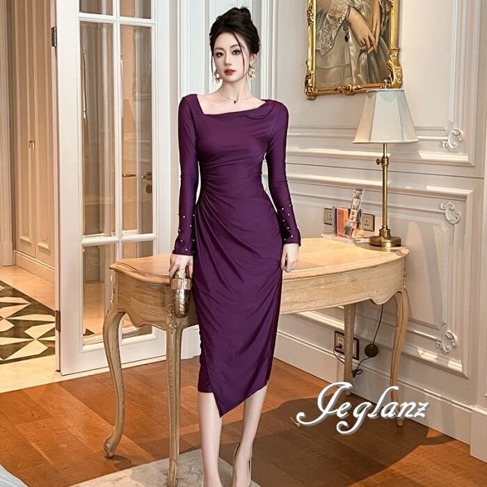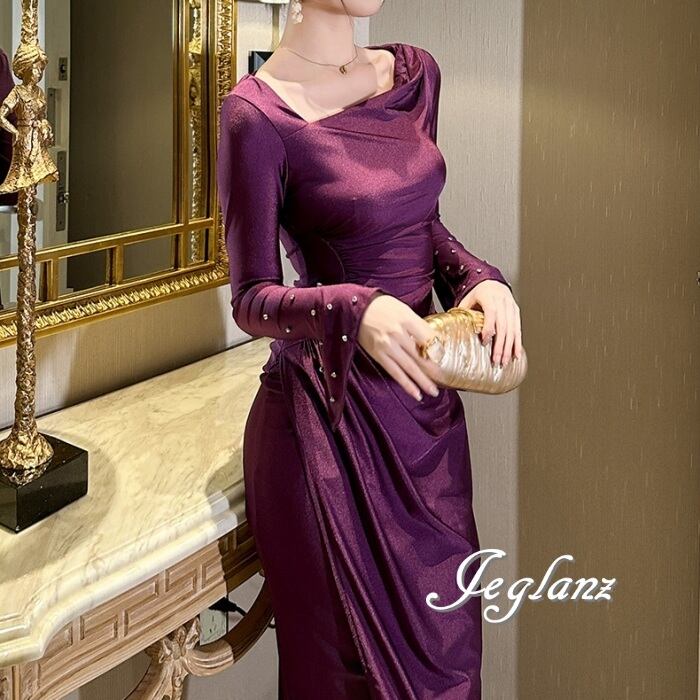 パーティ ドレス ワンピース アシメ プリーツ ビジュー付き(MA924)ζ