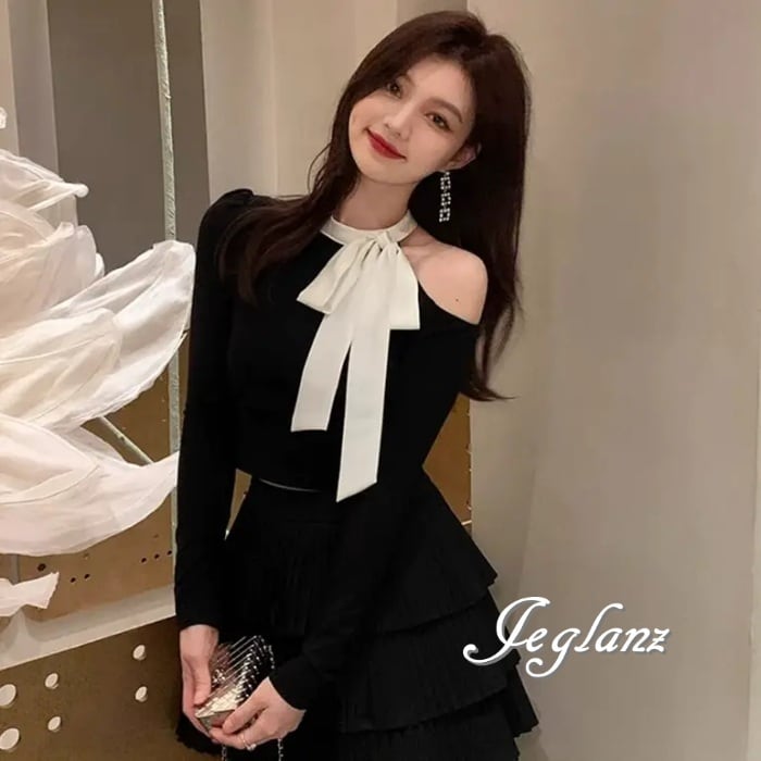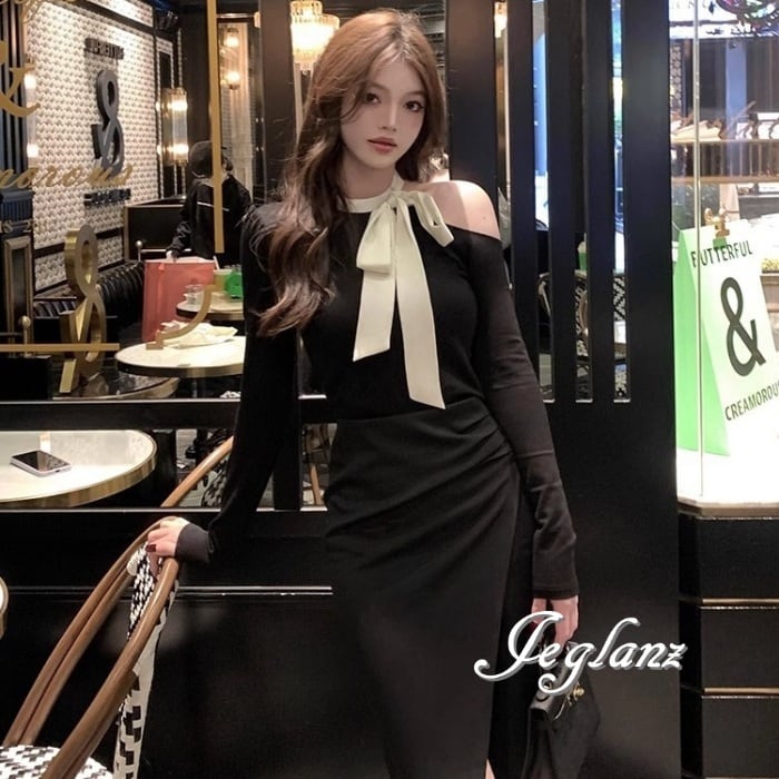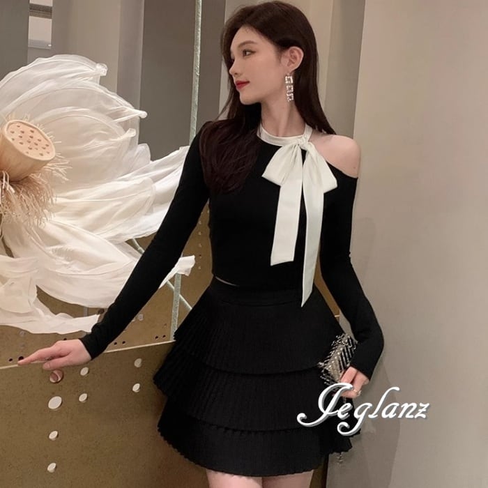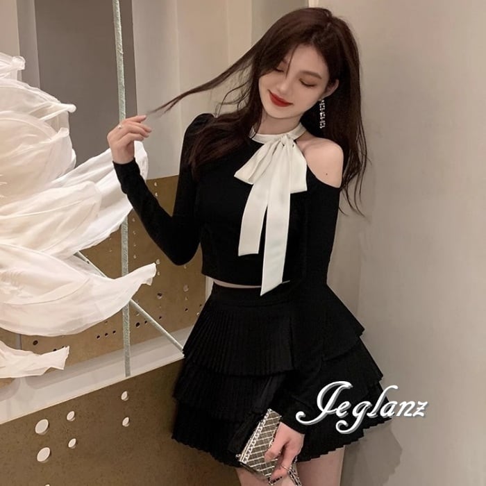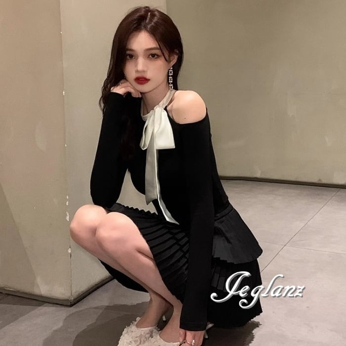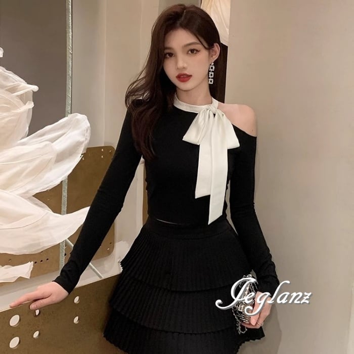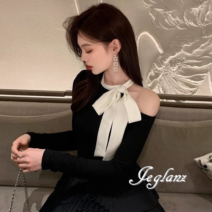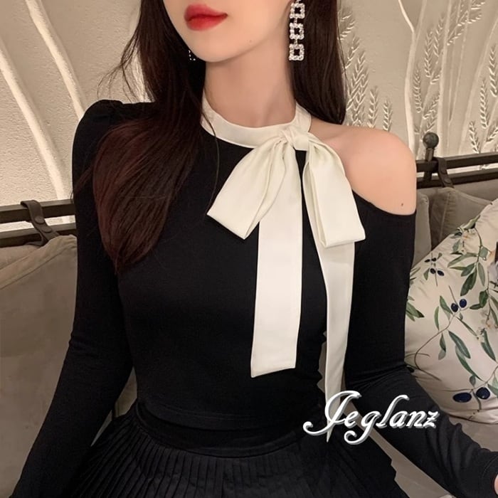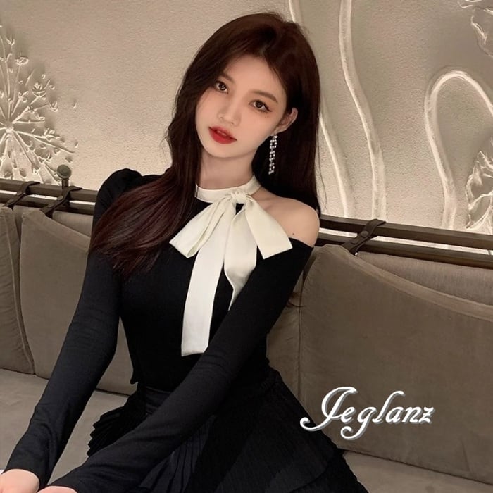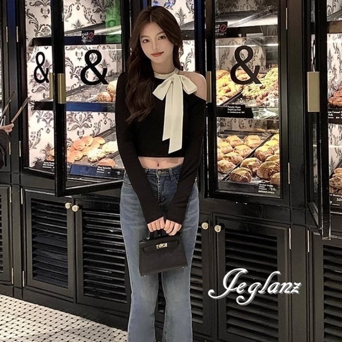 バイカラー カットソー クロップド丈 オープンショルダー 肌見せ(MA928)σ,ς*