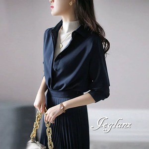 スキッパー 長袖 ワンピース プリーツ きれいめ カジュアル派 ♪(MA932)ζ