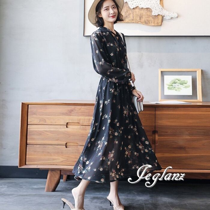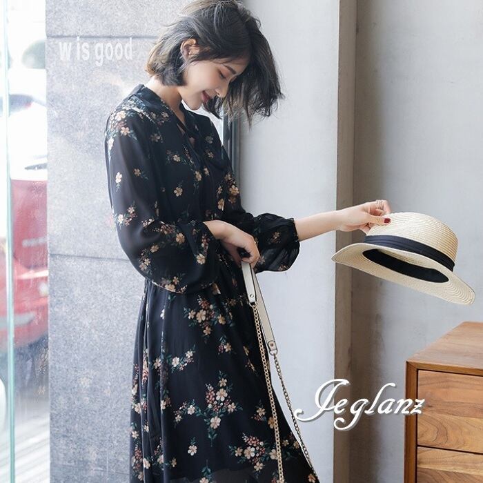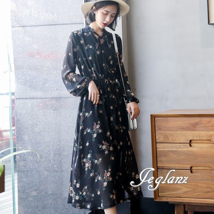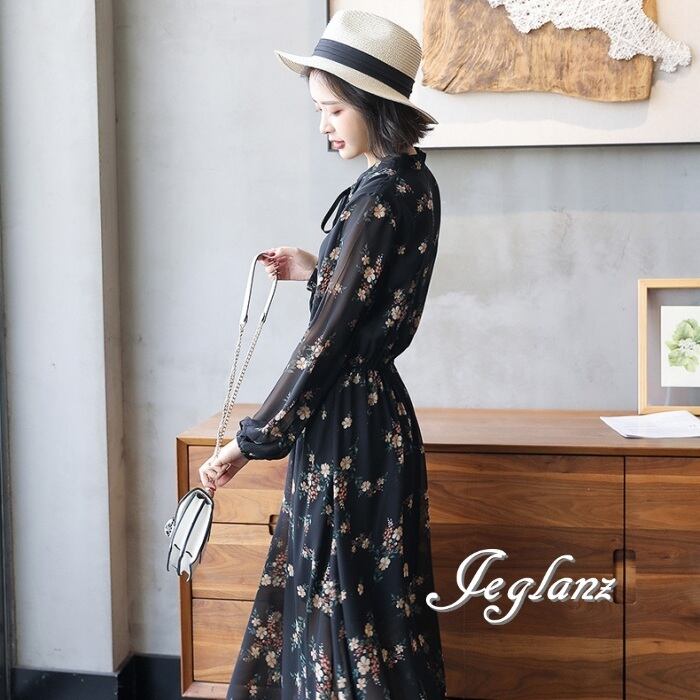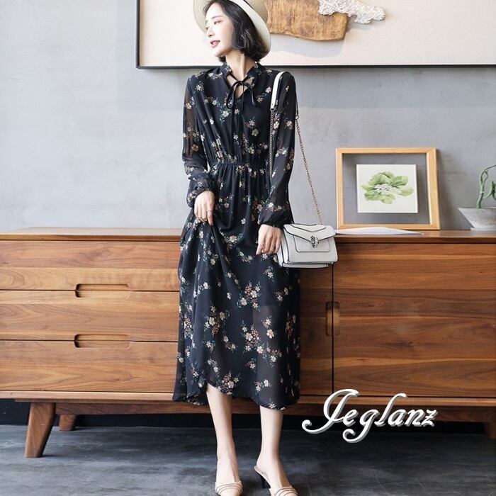 ボタニカル ワンピース 長袖 ドレス シアー きれいめ カジュアル(MA935)β