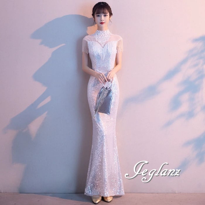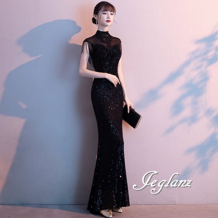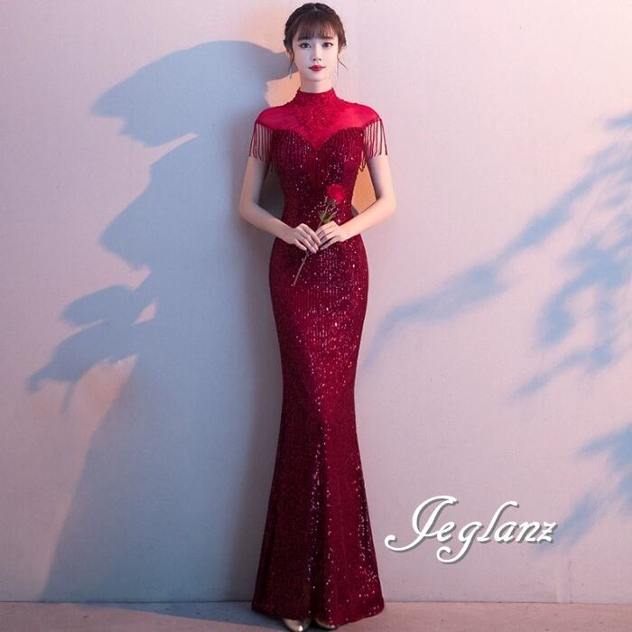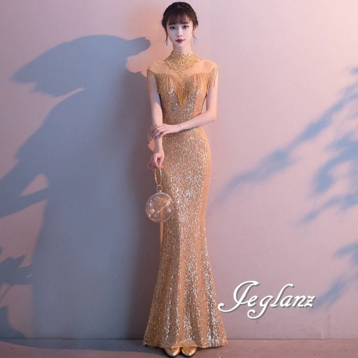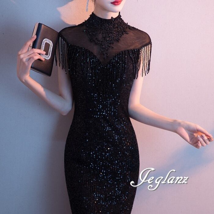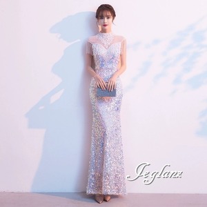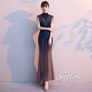 8色 パーティ イブニングドレス フリンジ シアー マーメイド ♪(MA944)ζ