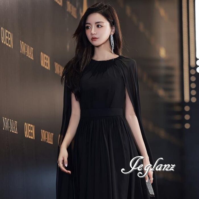 パーティ イブニングドレス ブラック ドレス スリットスリーブ(MA945)ζ