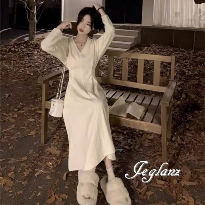 2色 ニット ワンピース ドレス きれいめ シンプル派 フェミニン(MA956)γ