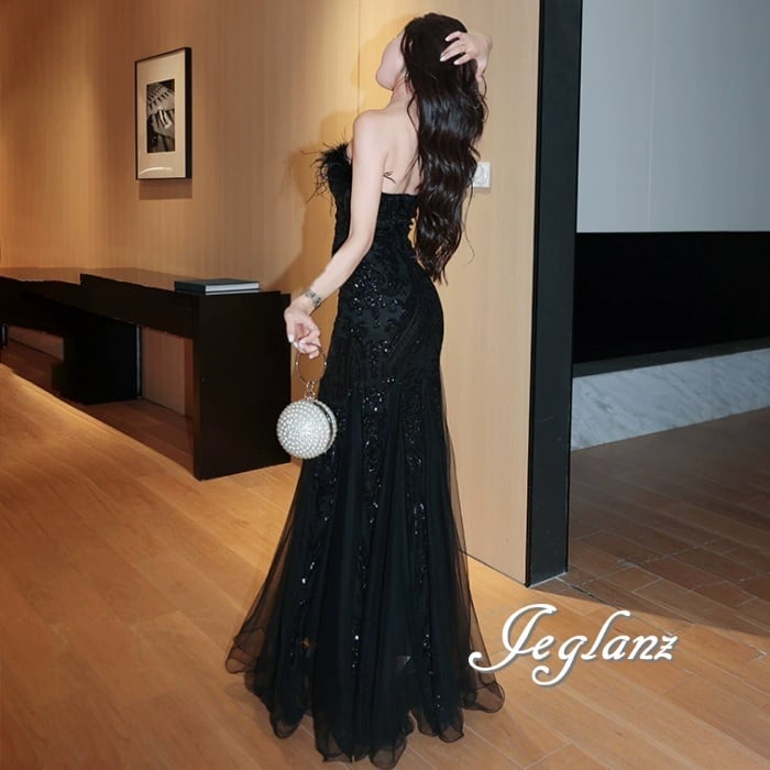 2色 パーティ イブニング フェザードレス ベアトップ ファンシー(MA964)η