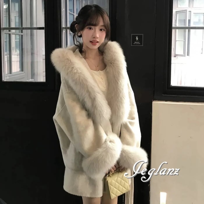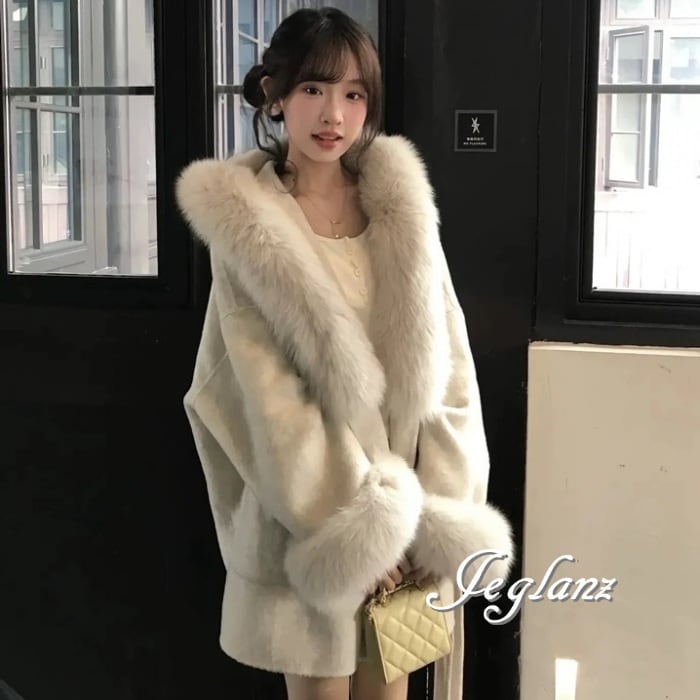 ニット コート ボリュームファー ドロップショルダー 共ベルト(MA972)τ
