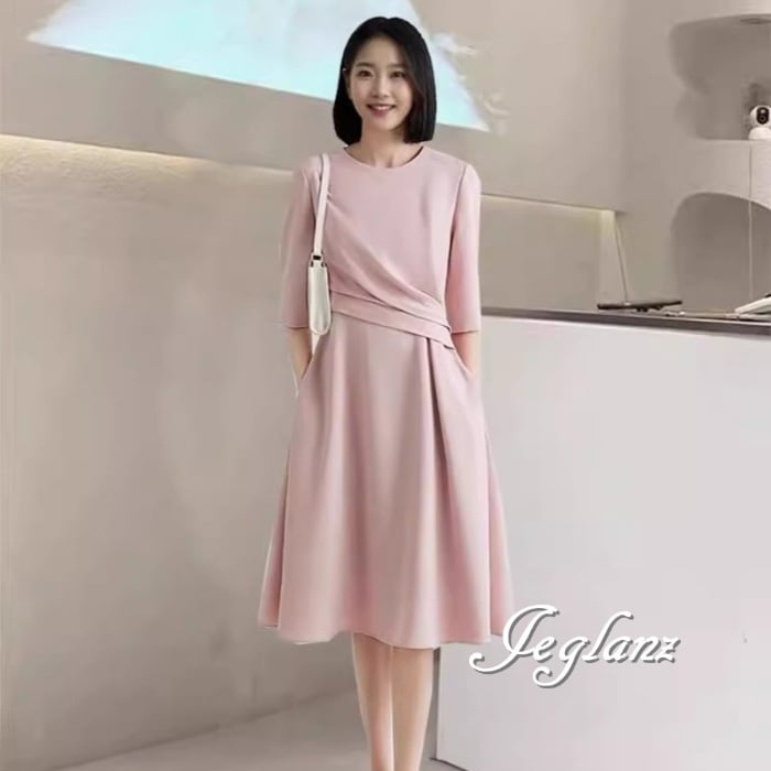 上品 ワンピース ドレス フォーマル 7分袖 大きいサイズ 2色 (MA974)ζ