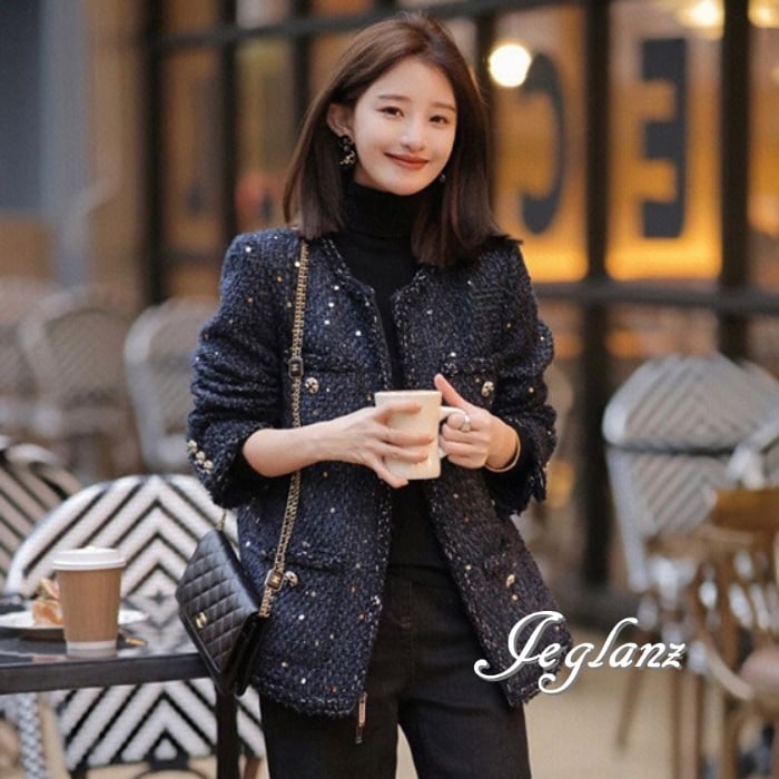 ツイード ニット ジャケット トリミング 金ボタン クラスアップ感(MA975)τ