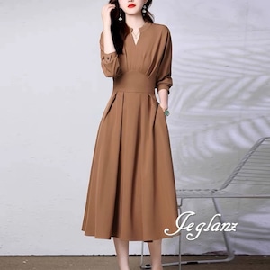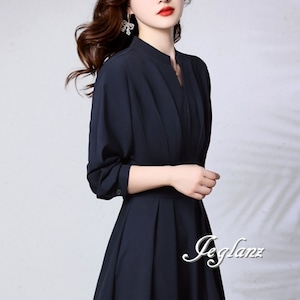上品 フォーマル ワンピース ドレス キーネック シンプル派 4色(MA981)ζ