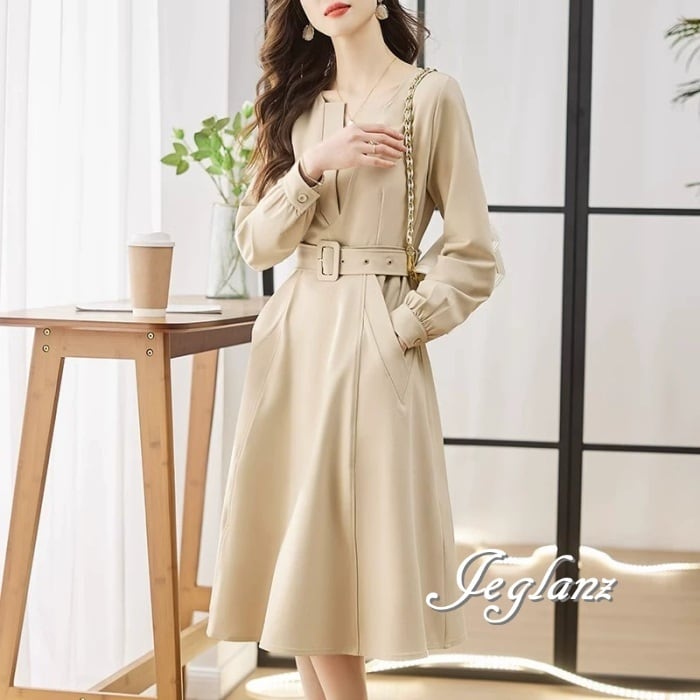 3色 フォーマル ワンピース キーネック きれいめ 共ベルト 上品 (MA982)ζ