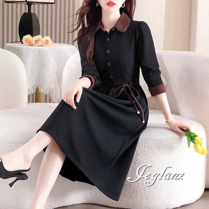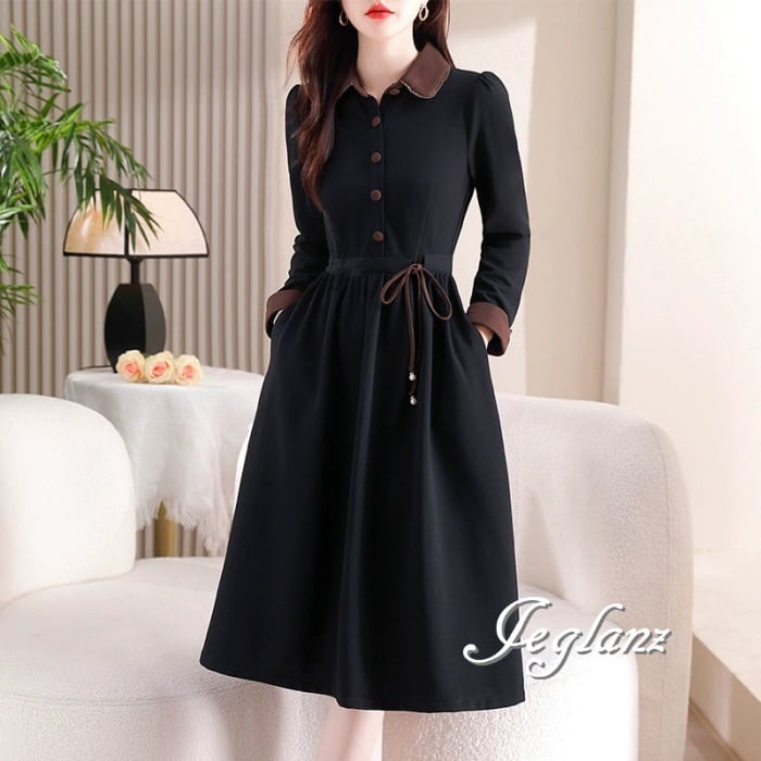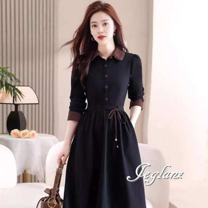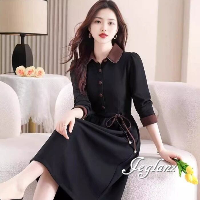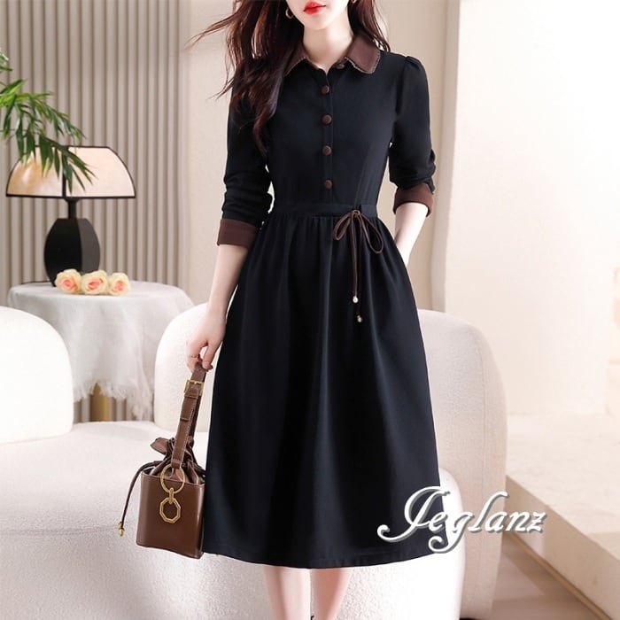 バイカラー シャツ ワンピース 襟付き 異素材 ドロスト ♪( MA986)